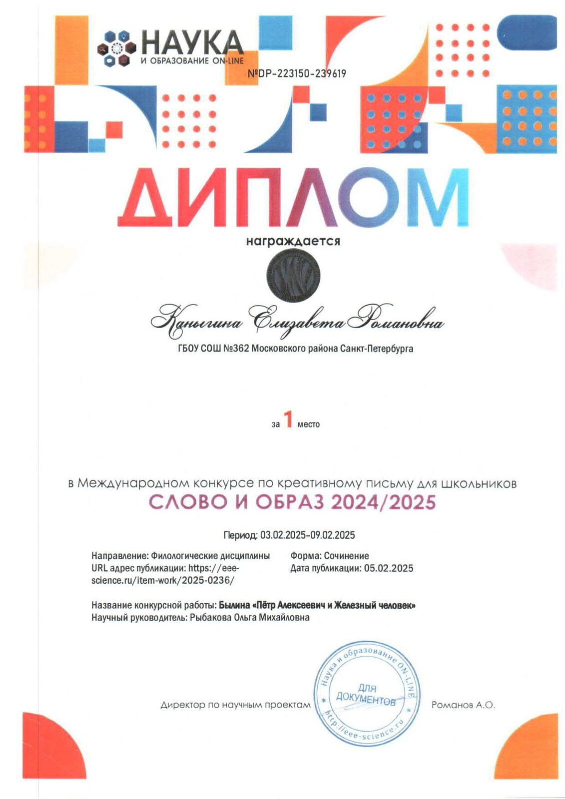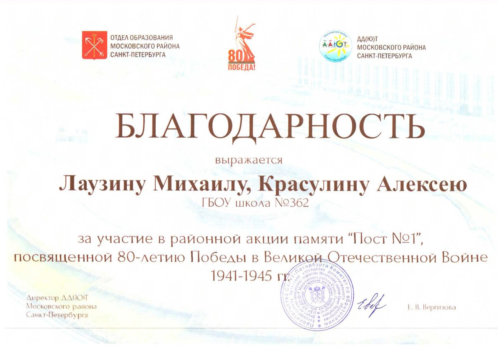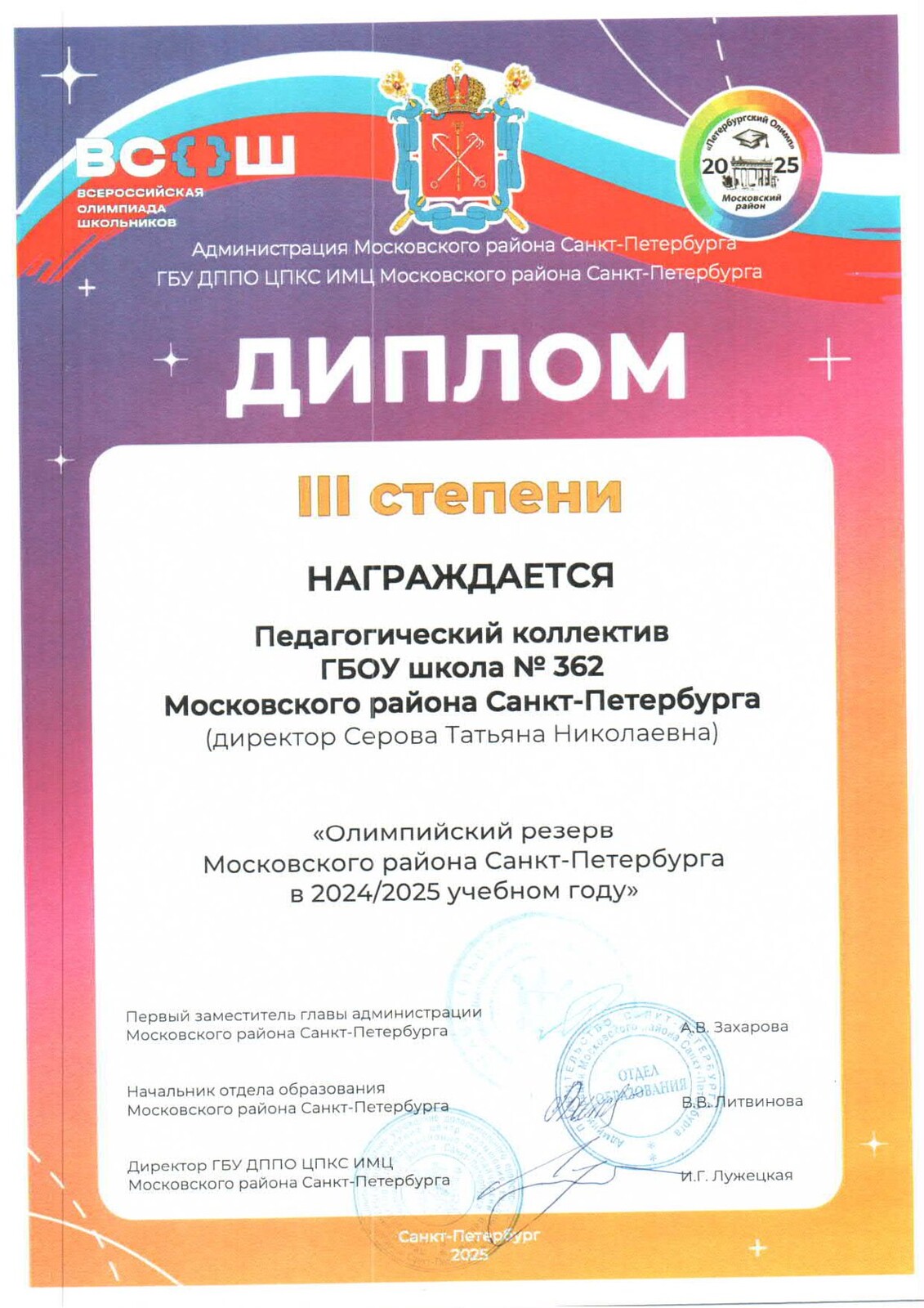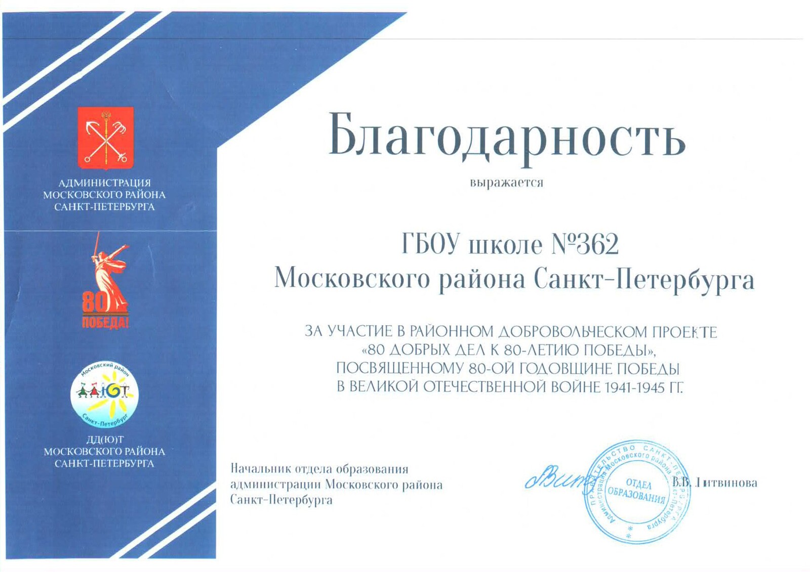 ГБОУ школа № 362 Московского района Санкт-Петербурга