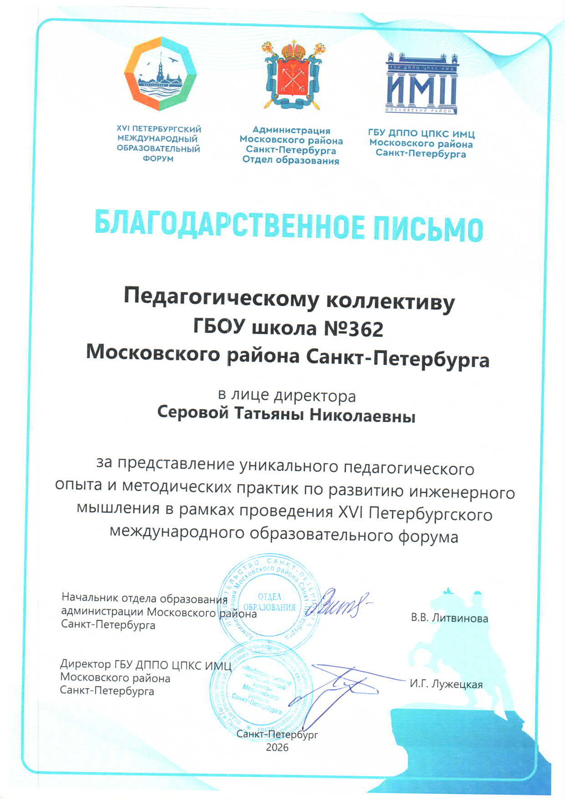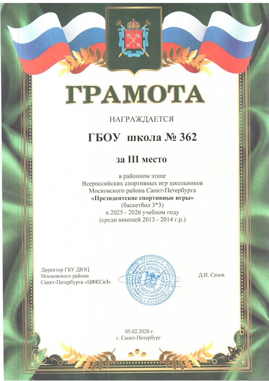ГБОУ школа № 362 Московского района Санкт-Петербурга