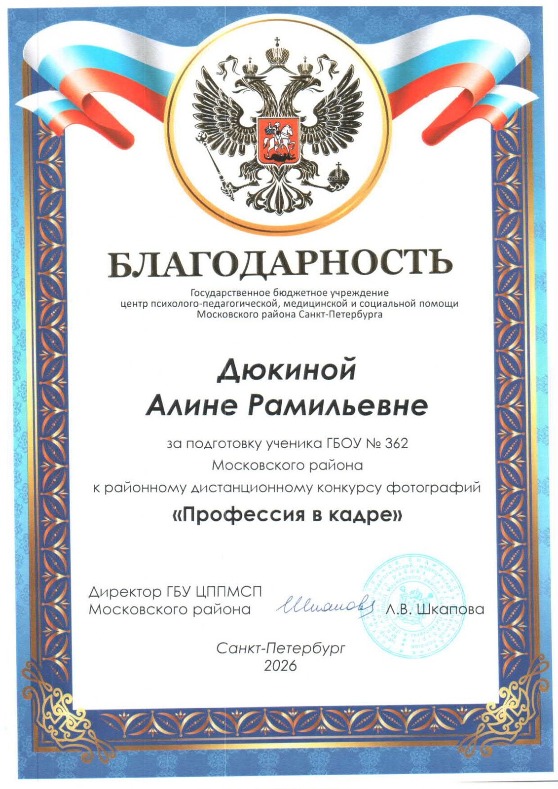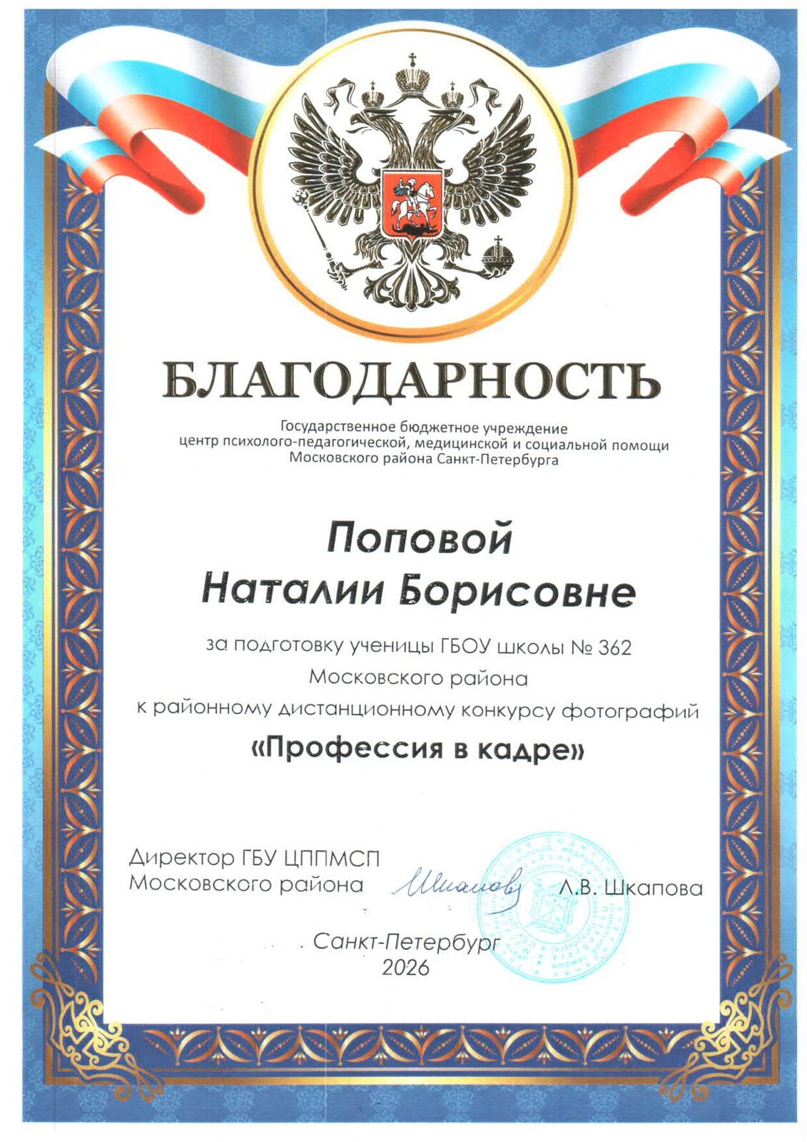 Электронная приёмная директора ГБОУ школа № 362