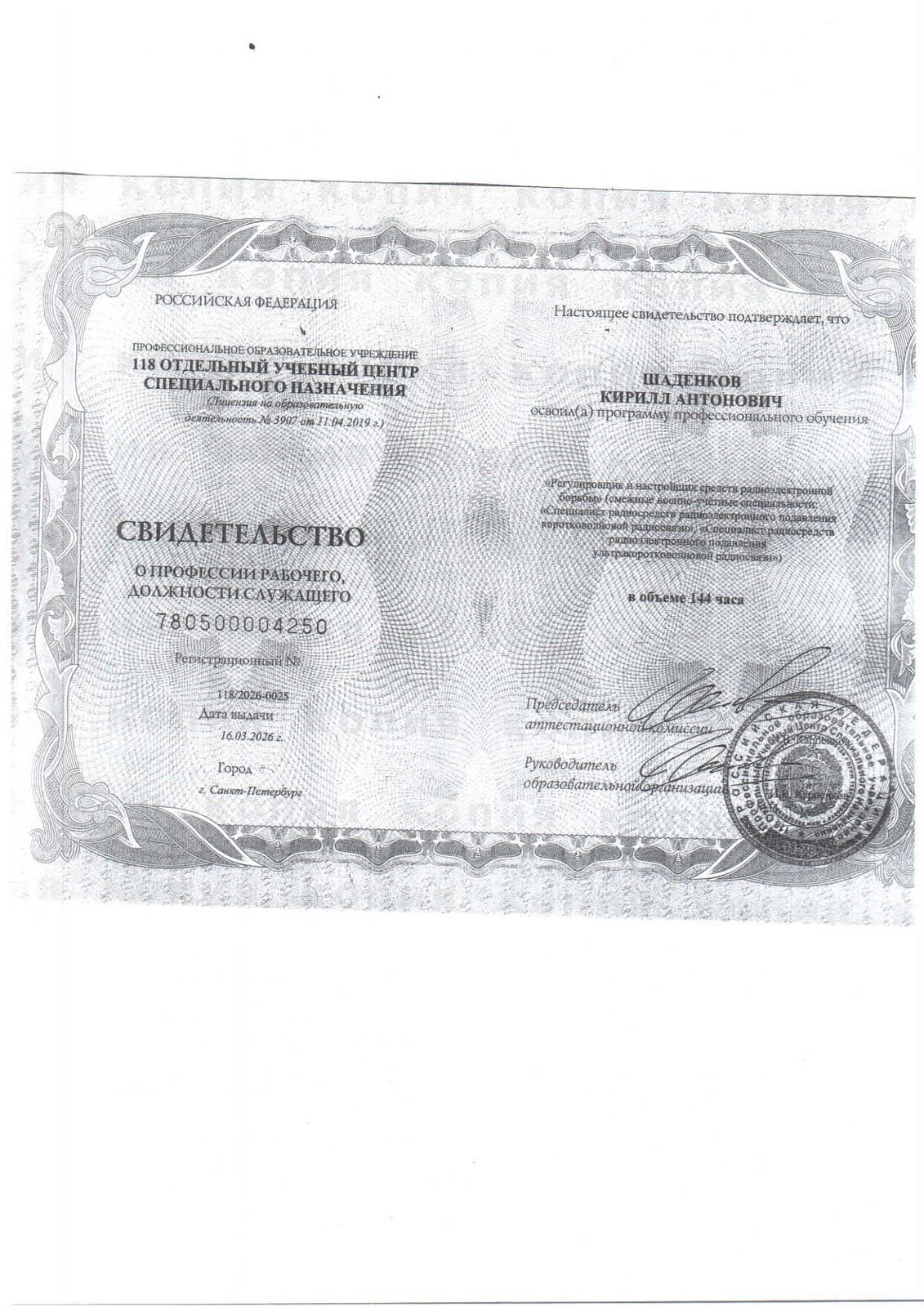 Среднее профессиональное образование