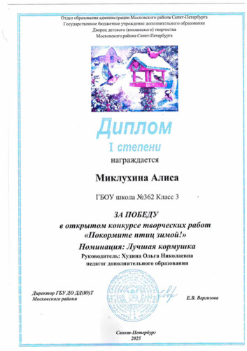 Миклухина Алиса Покормите птиц зимой